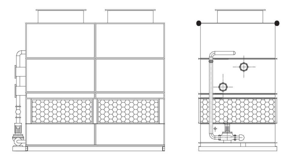 箱体采用密闭式循环;杜绝杂物进入塔体引起喷淋堵塞;