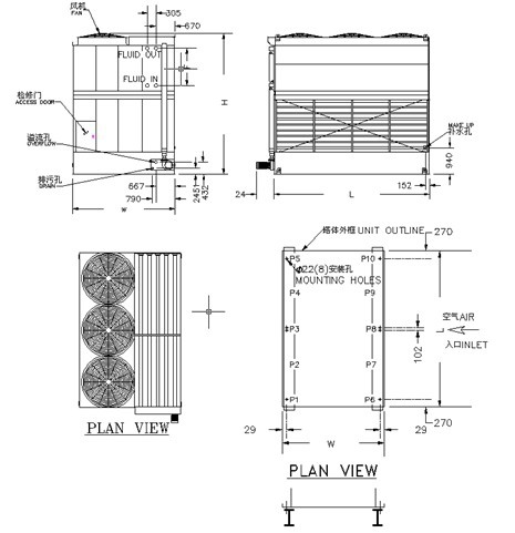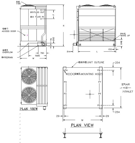 应用:可将工艺流体的温度保持在相当接近空气湿球温度的情况下。适合冷却温度较高(如80℃以上)或冷却温差较大(60—35℃)的项目。